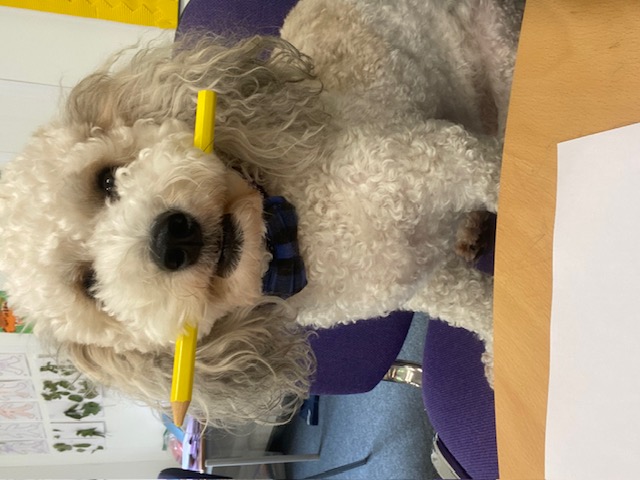 | Barney is our lovely wellbeing dog who is working in our school as part of an ongoing provision for well being and mental health. Barney lives with Sue Potter our wellbeing mentor and comes into school every day to be alongside the children. |